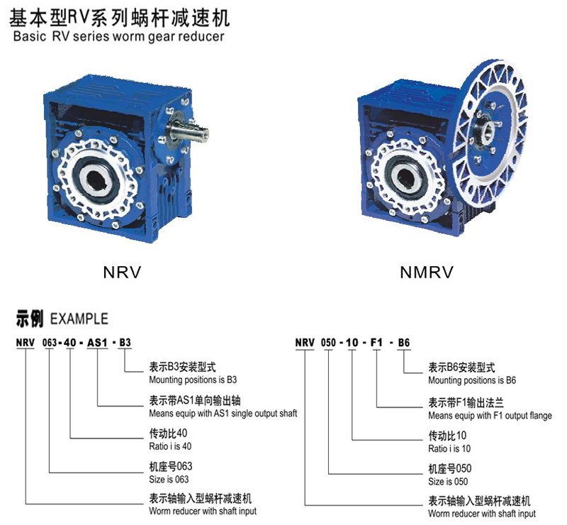 RV系列蝸輪蝸桿減速機(jī)分類形式有兩種: